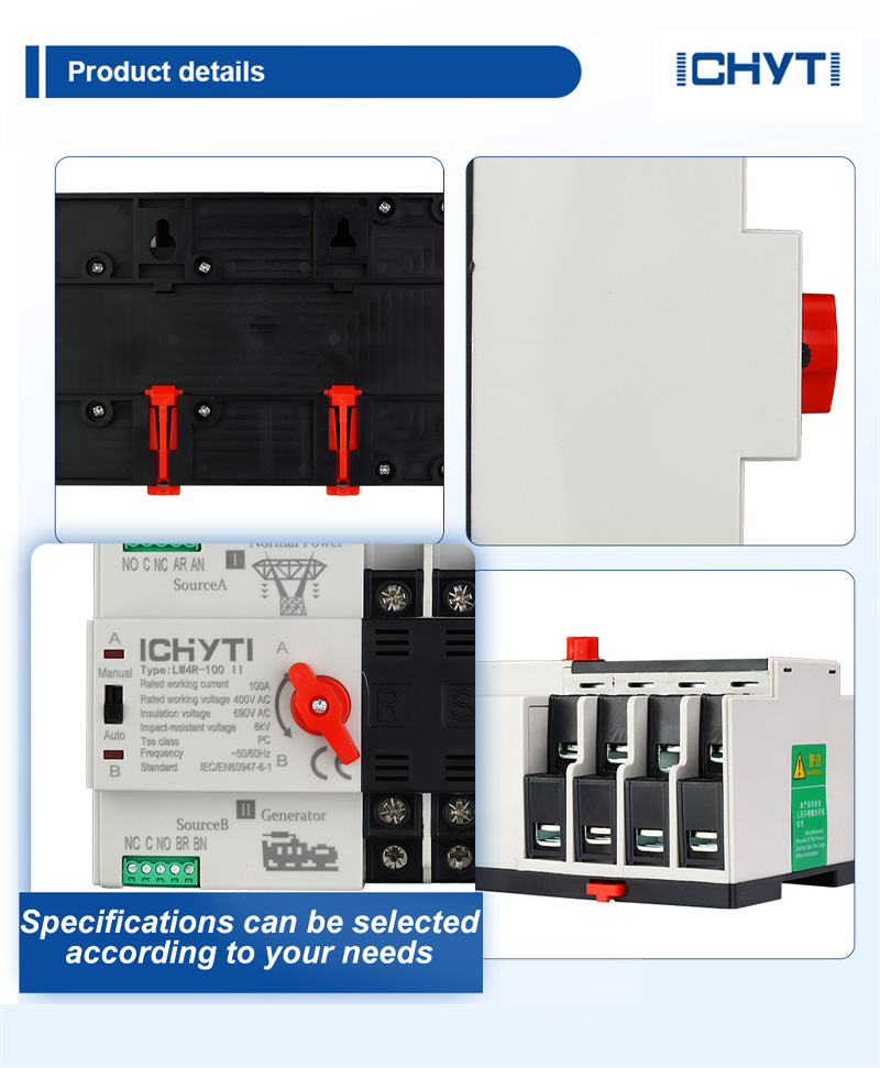 China factory ICHYTI 100 Almatical Transfer Sitch သည် 400V နှင့် 100A AC အဆင့်သတ်မှတ်ချက်အတွက်အရေးပေါ်လျှပ်စစ်ဓာတ်အားပေးရေးစနစ်များအတွက်အကောင်းဆုံးဖြစ်သည်။ ၎င်း၏ကျစ်လစ်သိပ်သည်းသောဒီဇိုင်း, ယုံကြည်စိတ်ချရသောလွှဲပြောင်းမှုလုပ်ဆောင်နိုင်စွမ်း, လွယ်ကူစွာတပ်ဆင်ခြင်းနှင့်ထိန်းသိမ်းခြင်းနှင့်ရှည်လျားသောသက်တမ်းသည်၎င်းကိုလူကြိုက်များစေသည်။ 100 ခိုလှုံစရာအလိုအလျောက်လွှဲပြောင်းခလုတ်သည်စဉ်ဆက်မပြတ်လျှပ်စစ်ဓာတ်အားထောက်ပံ့မှုသည်မရှိမဖြစ်လိုအပ်သောအရာများအတွက်သင့်လျော်ပြီးလျှပ်စစ်ဓာတ်အားနှင့်လုံးလုံးလျားလျားလည်ပတ်နိုင်သည်။ LW2R စီးရီး 100 ခိုလှုံစရာအလိုအလျောက်အပြောင်းအရွှေ့ပြောင်းခြင်းသည် IEC60947-6-1 ၏လိုအပ်ချက်များကိုနိမ့်ကျသော switchgear နှင့် control protects အတွက်လိုအပ်ချက်များနှင့်ကိုက်ညီသည်။