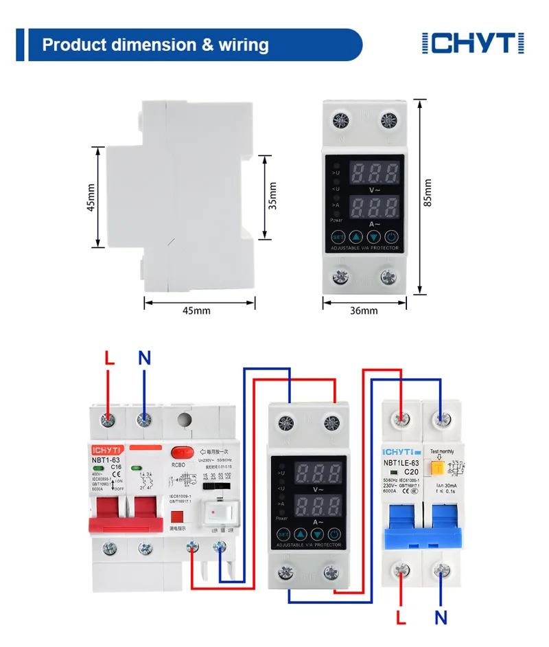 1 ~ 40A ချိန်ညှိနိုင်သော (မူလ: 40A) 1 ~ 63A ချိန်ညှိနိုင်သော (ပုံသေ- 63A) |