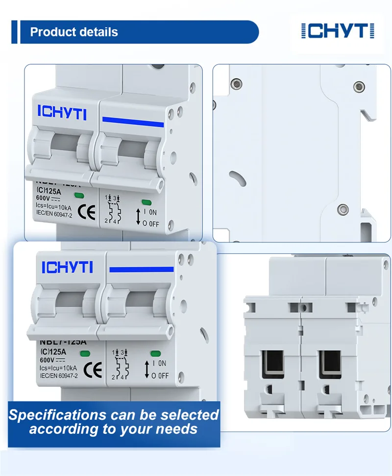 သုံးစွဲသူများ၏လိုအပ်ချက်နှင့်အခြေခံအဆောက်အအုံအသစ်များရှိသုံးစွဲသူများ၏လျှောက်လွှာလိုအပ်ချက်များကိုတုန့်ပြန်ရန် ICHYTI ထုတ်လုပ်သူသည် NBYTI ထုတ်လုပ်သူသည် NBYTI မှထုတ်လုပ်သူသည် NBL7-125A Non Polarity Non Polarity MCB အသစ်တစ်ခုကိုစတင်ခဲ့သည်။ ဤ DC circuit breaker သည် DC1000V / DC600V ၏ rated လုပ်သည့် voltarios နှင့် rated rated 80A မှ 125a မှ 125A အထိရှိသည်။ ၎င်းသည် DC စနစ်များအတွက်တိုတောင်းသော circuit protection နှင့် overload protection function များကိုရရှိနိုင်ပါသည်။