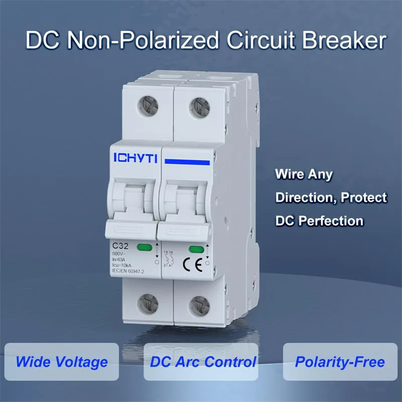 စွမ်းအင်သိုလှောင်ရေးစနစ်များအရတရုတ်ပေးသွင်းသူများ၏နည်းပညာဆိုင်ရာအကျိုးကျေးဇူးများ ICHYTI Polarity DC circuit breaker (အဝင်နှင့်အဝင်များနှင့်အထွက်များနှင့်အညီအပျက်သဘောဆောင်သောတိုင်များအကြားခွဲခြားမှုမရှိ)